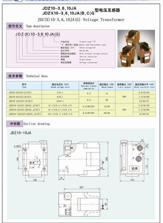 JDZ(X)10-3,6,10 JA(G)型电压互感器