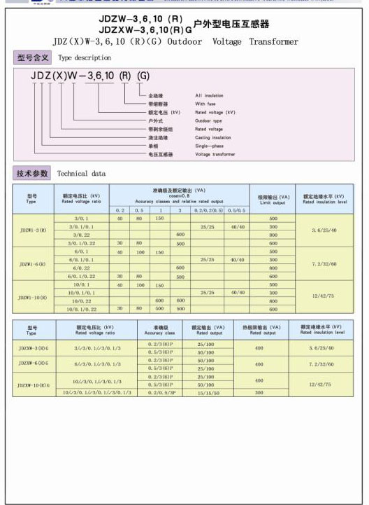 JDZ(X)w-3,6,10(R)(G)型户外电压互感器