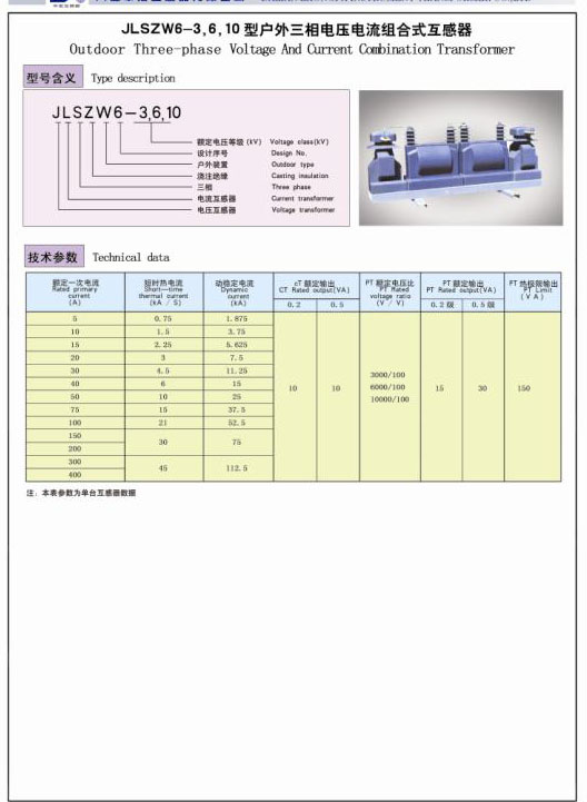 JLSZW6-3,6,10型户外三相电压电流组合式互感器