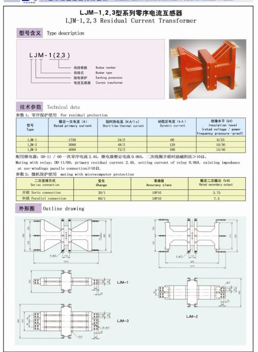 LJM-1,2,3型系列零序电流互感器