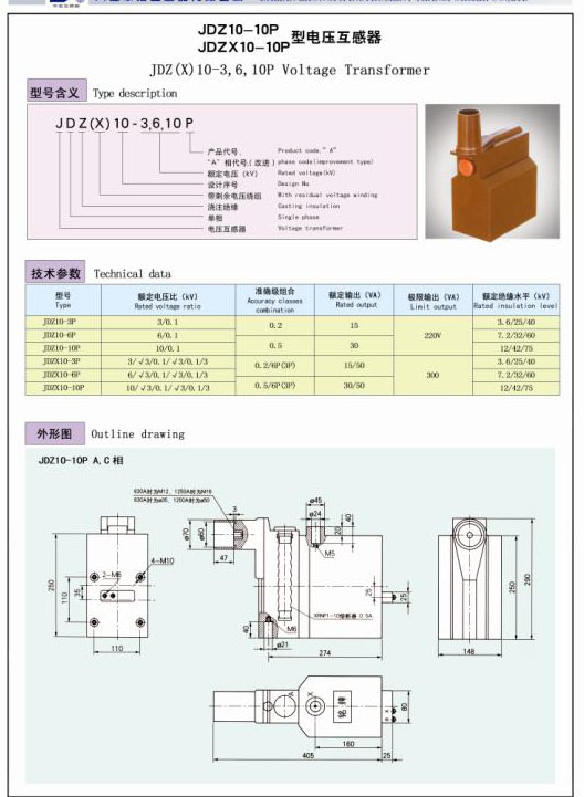 JDZ(X)10-3,6,10P型电压互感器